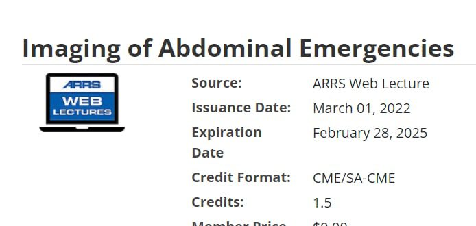 ARRS Imaging of Abdominal Emergencies This Web Lecture includes three lectures with an estimated time to complete the activity of 1.50 hour.